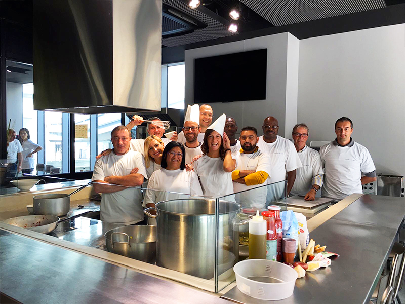 Un metodo originale, il team cooking, che utilizza la metafora della cucina per parlare di azienda. Le brigate di cucina, sono formate da forze singole che tuttavia devono collaborare sinergicamente per creare meraviglie per il palato. Allo stesso modo lo staff di un’azienda deve essere formato da persone fortemente motivate e che sappiano sia operare in maniera autonoma sia collaborare per creare sempre nuove ricette d’affari.